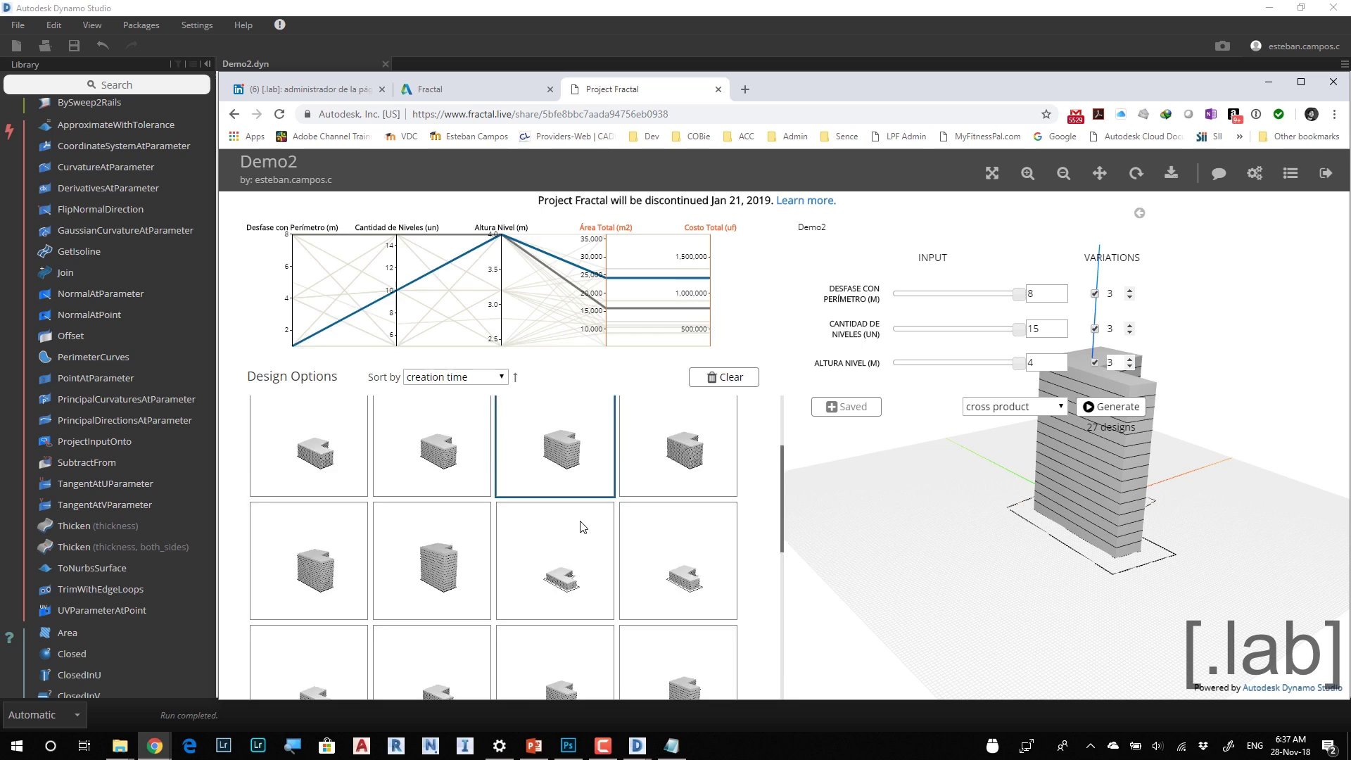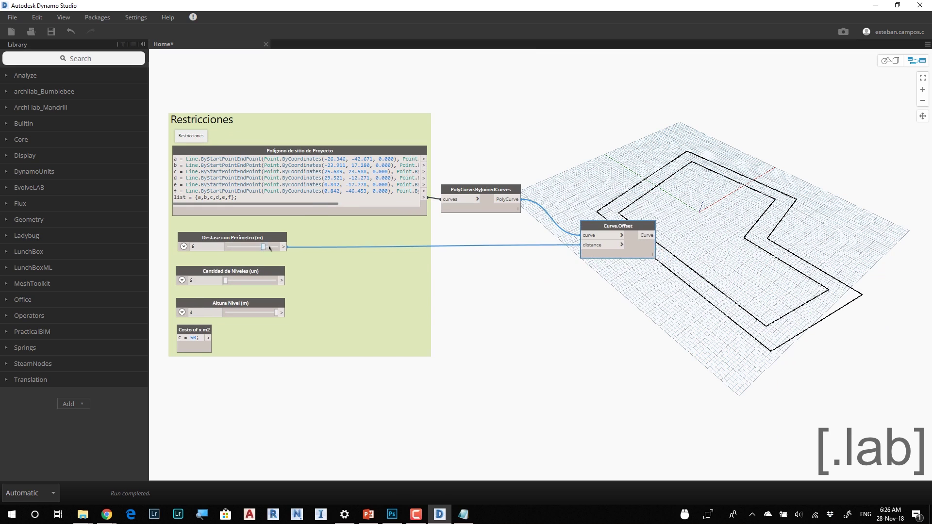 5. Generar estudios en Dynamo especificando entradas y salidas adecuadas.
